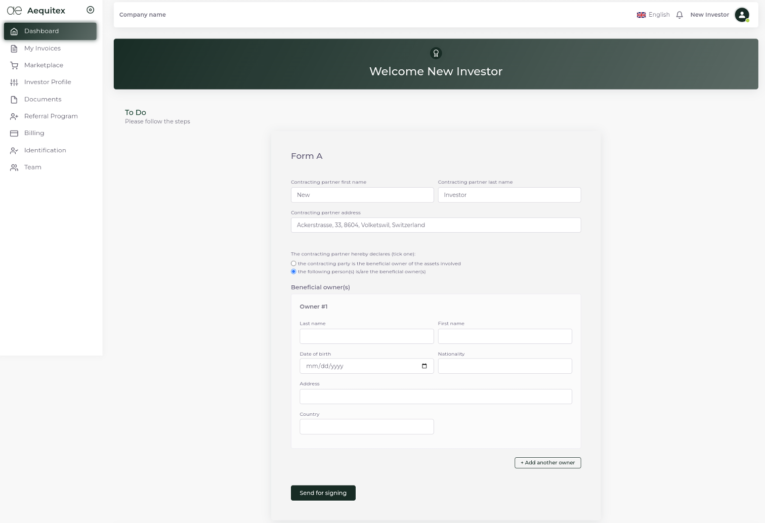 Before proceeding with your registration as an investor via Aequitex, it is helpful to have the following documents immediately available: Your ID (front and back), proof of address (e.g., in the form of an official letter, telephone or utility bill, etc.), and your mobile phone.